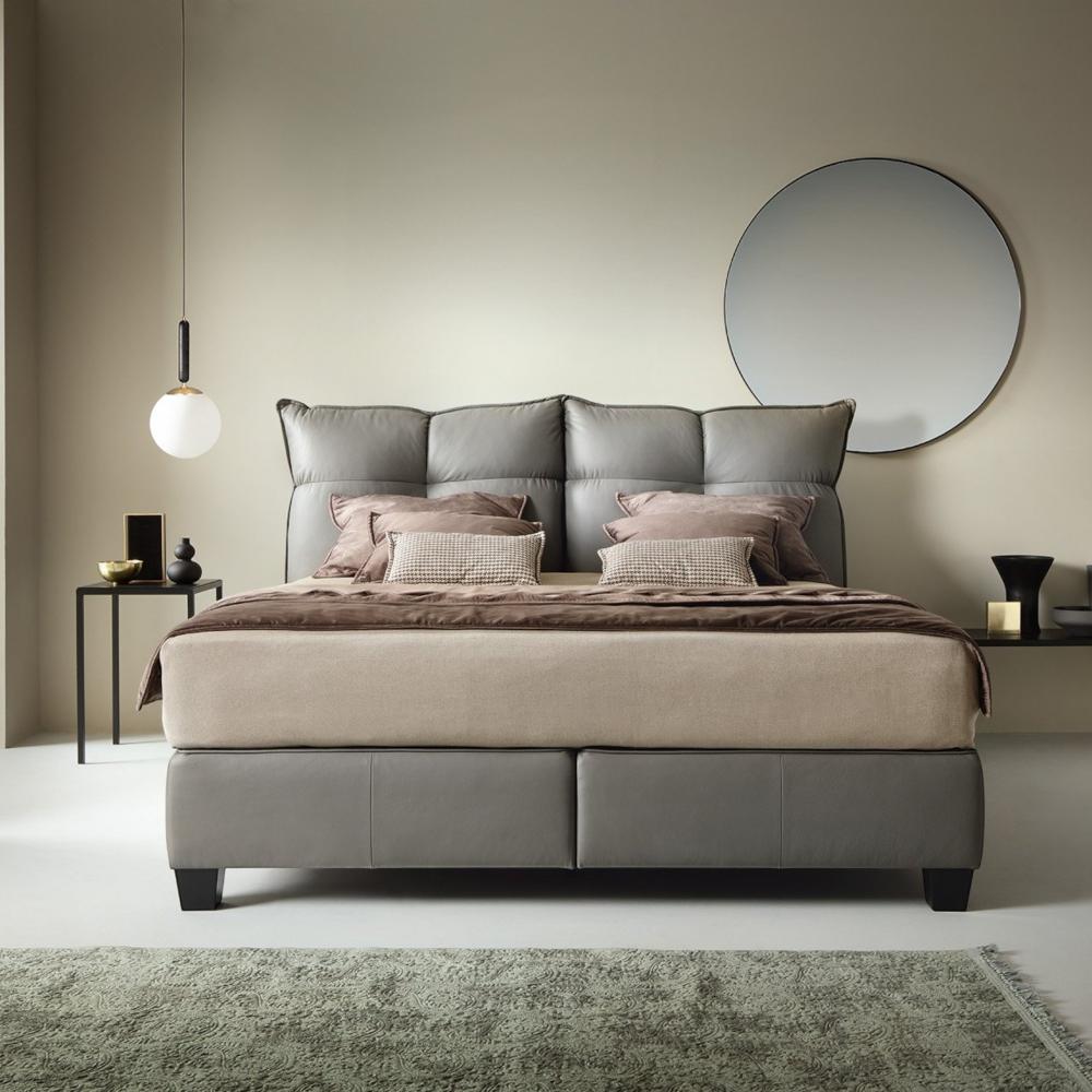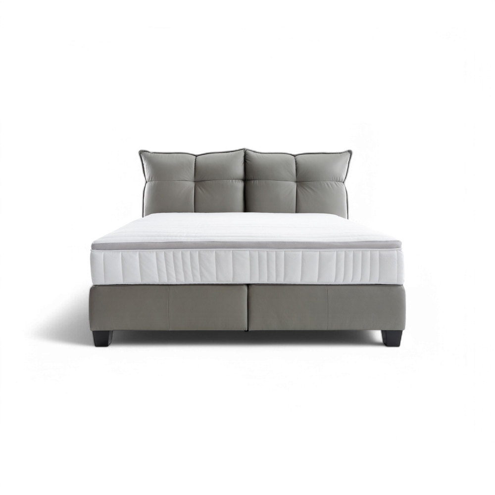 - يستوعب سرير جلد رمادي شخصين بكل أريحية، إذ أن هيكله المتين مصمم لمزيد من الثبات والدعم طوال الليل.