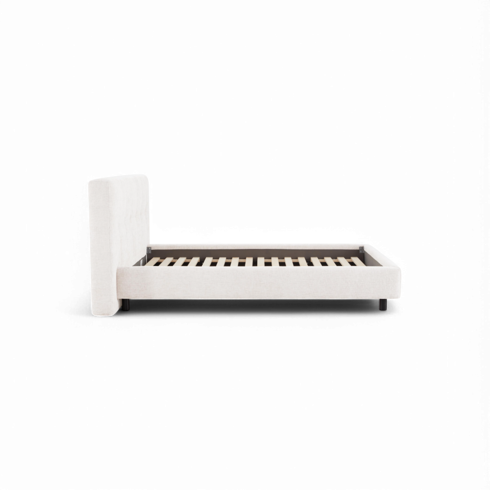 يتميز سرير منخفض ابيض من متجر لوفت للأثاث بتصميم يجمع بين البساطة والأناقة، ملائم لأجواء غرف النوم الحديثة التي تعتمد الراحة في تفاصيلها. قماش السرير عالي الجودة يغطي الإطار بلونه الأبيض ليمنح شعوراً بالنقاء واتساع المساحة. أبعاد السرير الكبيرة (180x200 سم) تدعم تجربة نوم هادئة لشخصين، ويُسهل نسيجه الناعم عملية التنظيف اليومي.
