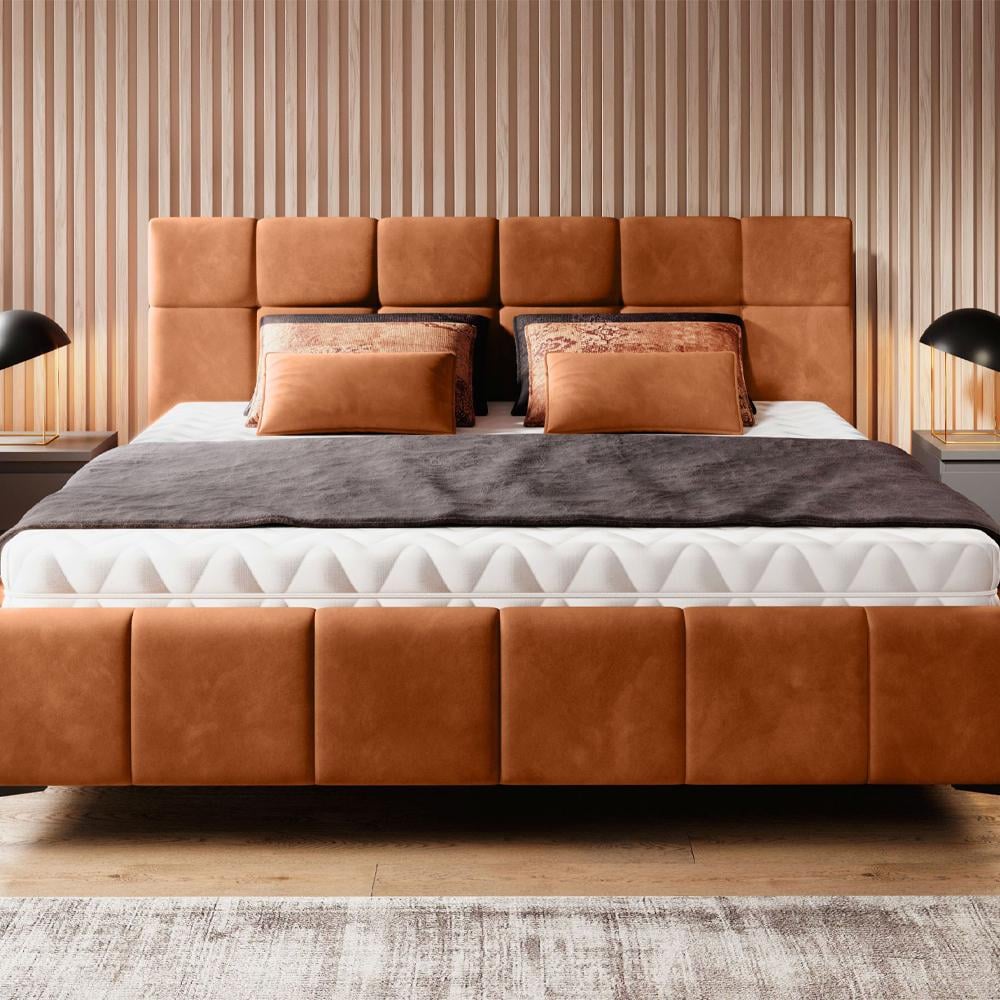 • يعزز التصميم المبطن مظهر سرير مودرن بني العام ويجعل الغرفة تبدو أكثر تنسيقًا ودفئًا.