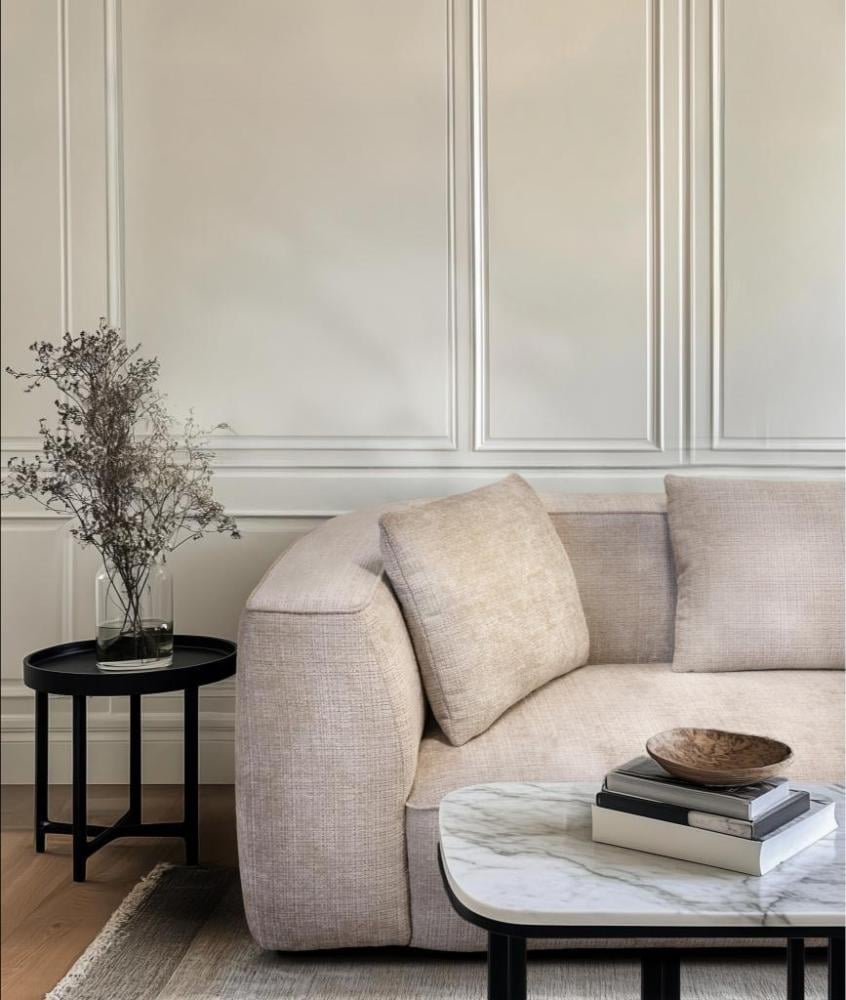 - اللون البيج المحايد يضفي هدوءاً على الأجواء ويساعد في دمج الأريكة مع قطع الأثاث الأخرى دون تعارض.