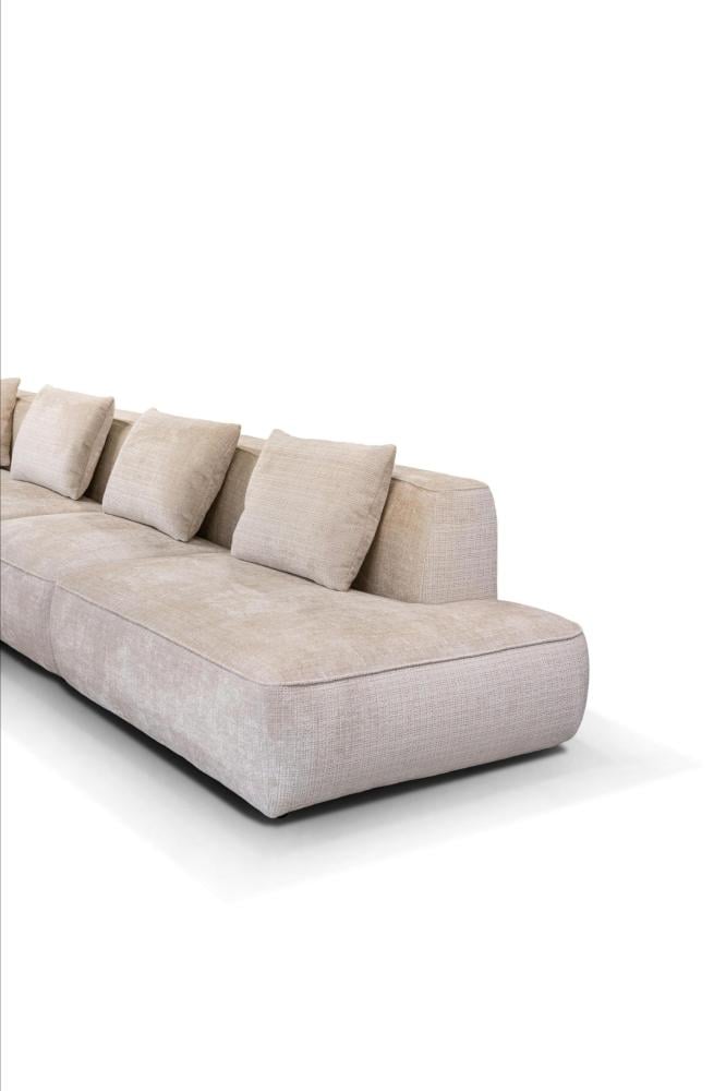 - تصميمها الزاوي والمودولار يدعم سهولة التغيير في شكل الأريكة بحسب الحاجة ومساحة المكان.