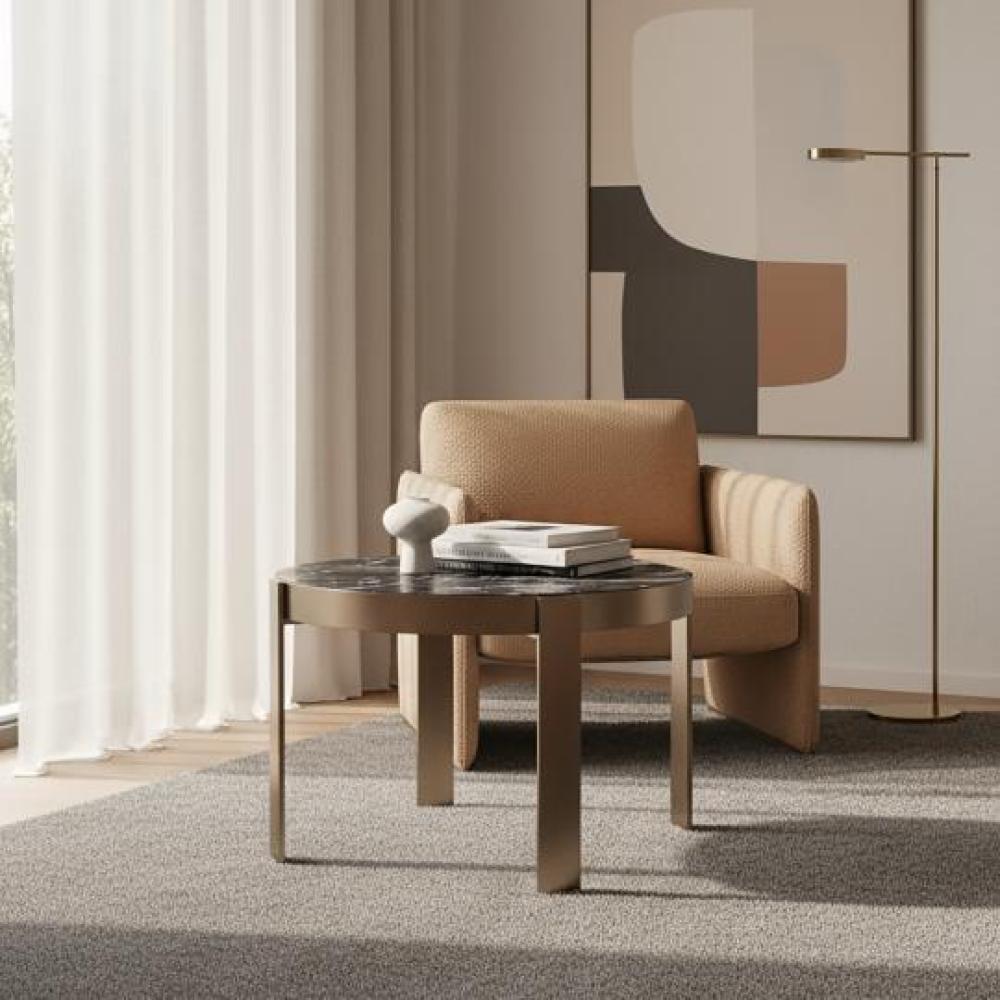 - ارتفاع طاولة جانبية رخام المدمج وتصميمها الدائري يساعدان في استخدام المساحة بشكل مثالي بجوار الأريكة أو في زوايا الغرف.