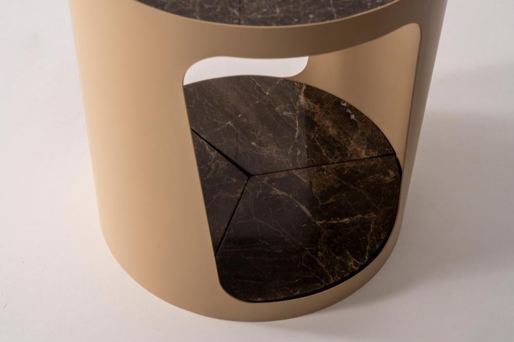 تتميز طاولة جنب من متجر لوفت للأثاث بتصميم مستدير يوازن بين الجمال العملي والبساطة، مما يجعل وجودها مناسبًا لمختلف المساحات المنزلية. سطحها المصنوع من الرخام البني المزخرف يوفر مقاومة جيدة للاستخدام اليومي، فيما يمنح اللون البيج للهيكل لمسة هدوء وتناسق مع الأثاث المحيط. توفر هذه الطاولة جانبًا عمليًا للديكور بفضل بنيتها القوية ومرونتها في الاستخدام بين غرف الجلوس وغرف النوم.