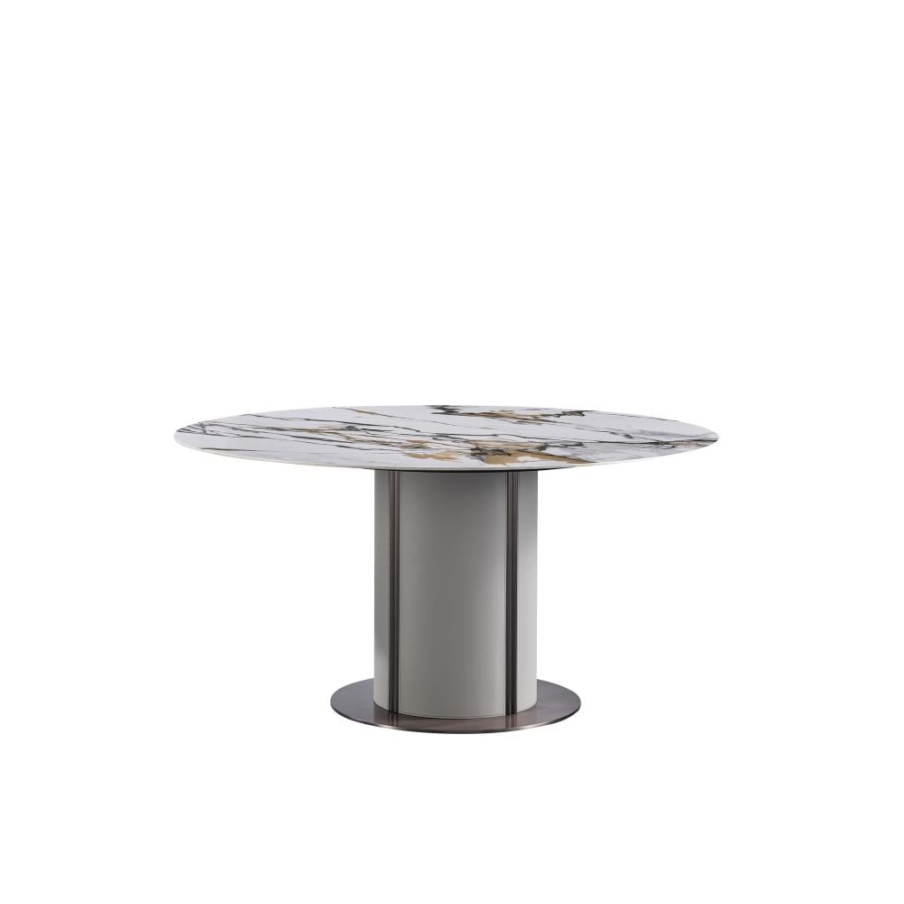 تعد طاولة طعام رمادي بتصميم دائري من متجر لوفت للأثاث إضافة عملية وعصرية لمساحة تناول الطعام، مع سطح متين مصنوع من الحجر المتكلس وقاعدة ذات تفاصيل جلدية ناعمة. يجمع هذا التصميم الحديث بين البساطة والأناقة، ما يسمح بدمجه بسهولة في المساحات الصغيرة والمتوسطة ويظهر لمسات من الجمال الحديث في أي غرفة طعام.