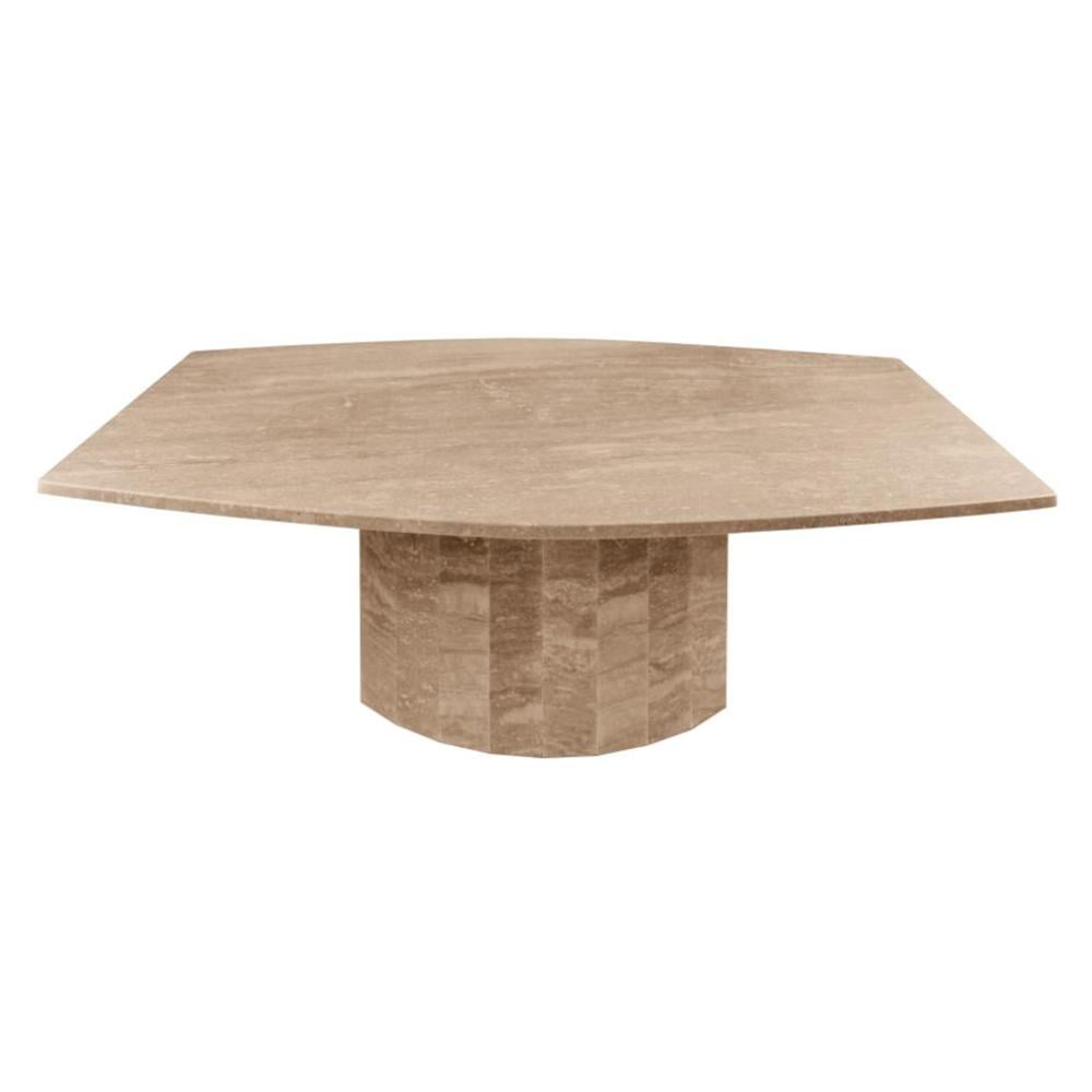 This coffee table, made of marble, features a modern room decor and an attractive color. It is an ideal square coffee table due to its seamless integration with surrounding home decor and its perfect size. The table coordinates well with all types of chairs, whether wooden chairs or fabric relaxation chairs. It has a closed base that is securely fixed to prevent any accidents that could cause it to tip over. The smooth surface is easy to clean and has a suitable area for serving snacks or sweets while enjoying your morning coffee. It is perfect for indoor or outdoor furniture, thanks to the marble material that withstands all elements.