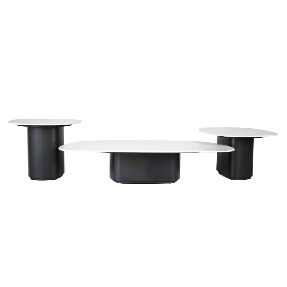 يمنح طقم طاولات قهوة مودرن من البوليريسين من متجر لوفت بأسلوبه الأنيق والعملي لمسة متجددة لأي غرفة معيشة أو ركن قهوة. يضم هذا الطقم ثلاث طاولات بشكل بيضاوي مميز مع تداخل الأبيض والأسود، ما يبرز تباين الألوان بتصميم معاصر. التصنيع باستخدام مادة البوليريسين يضفي متانة وسهولة في العناية، بينما توزيع الأحجام يتيح استخدام الطاولات بمرونة كطاولات قهوة أو جانبية حسب الحاجة.