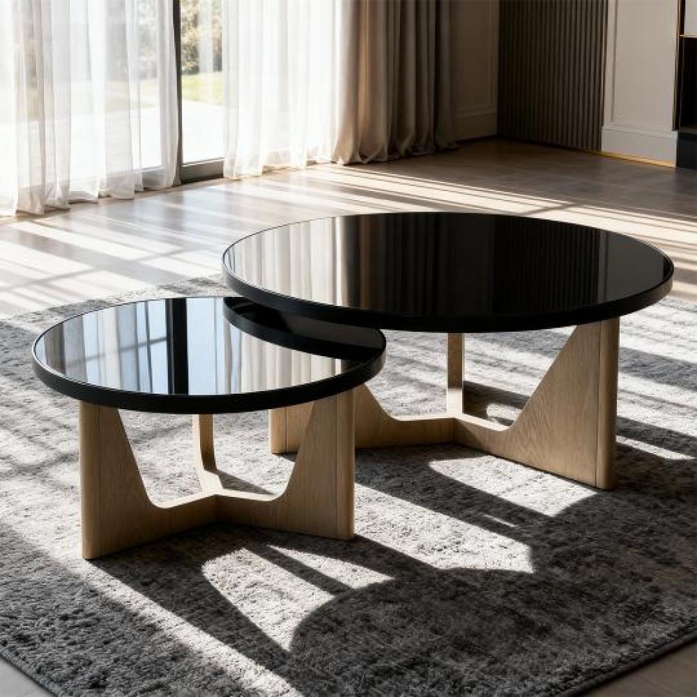 - توفر طاولة قهوة قطعتين إمكانية الترتيب بطريقة متداخلة أو توزيعها بشكل منفصل، ما يمنح خيارات متعددة تتناسب مع متطلبات مختلف المساحات.