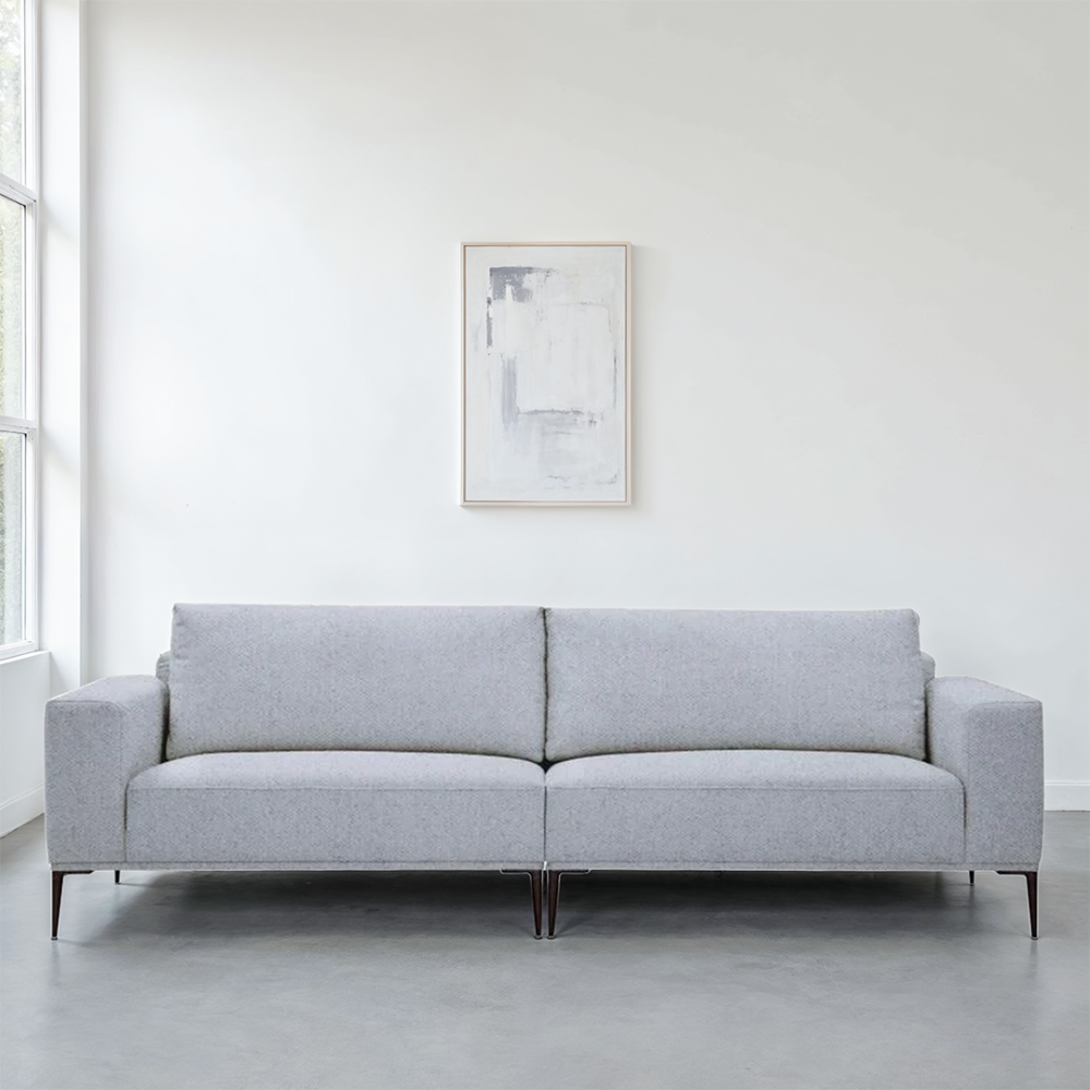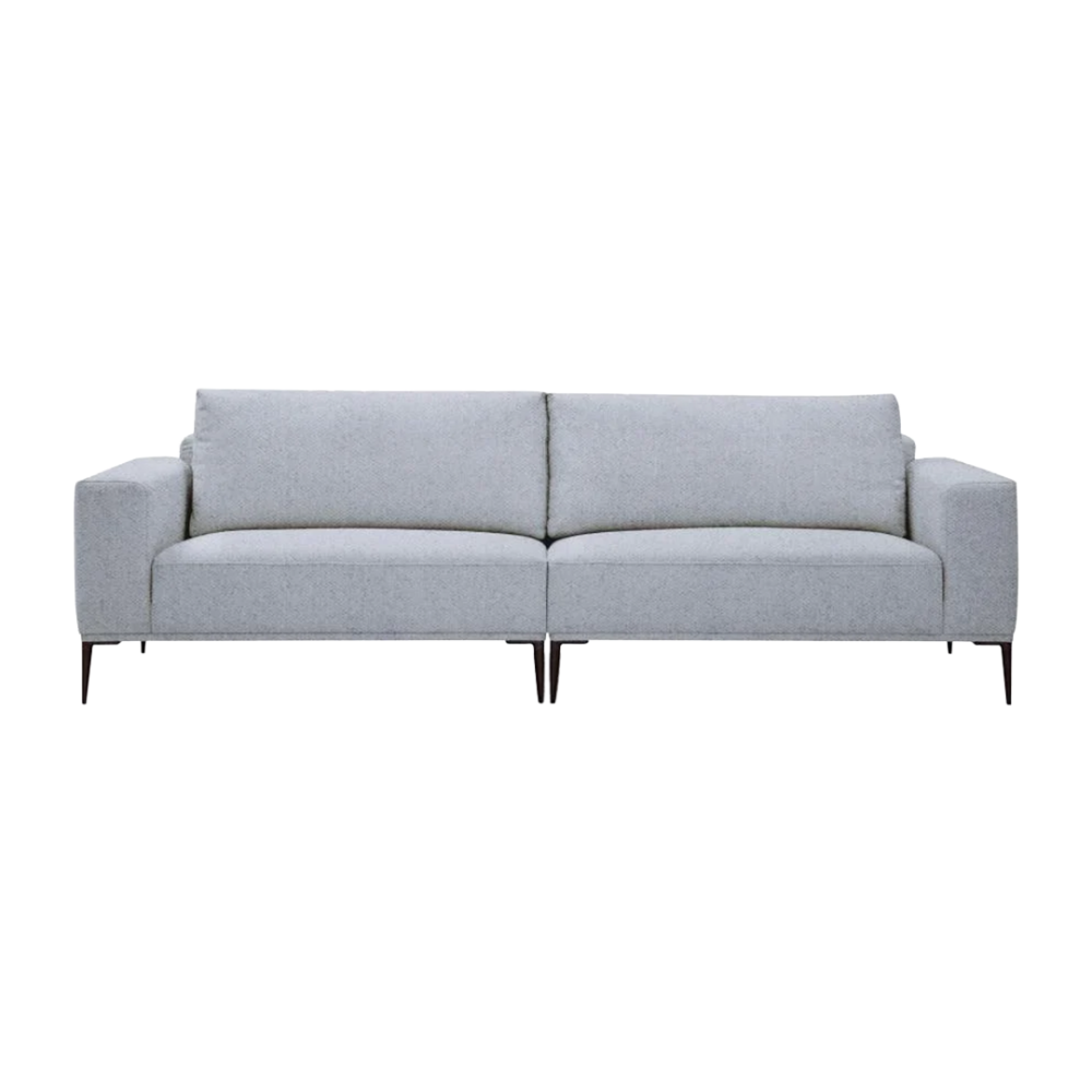Experience exceptional comfort with this 2 seater sofa, which features wide seats and comfortable back supports, along with rich cushioning that adds a touch of luxury and relaxation. The modern sofa includes armrests designed to enhance comfort while seated. It boasts a high-quality metal base that ensures stability and durability. Additionally, the light gray sofa features a soft-touch, durable fabric, making it a modern addition as a bedroom sofa or relaxation space behind your coffee table. Feel both comfort and elegance at the same time.