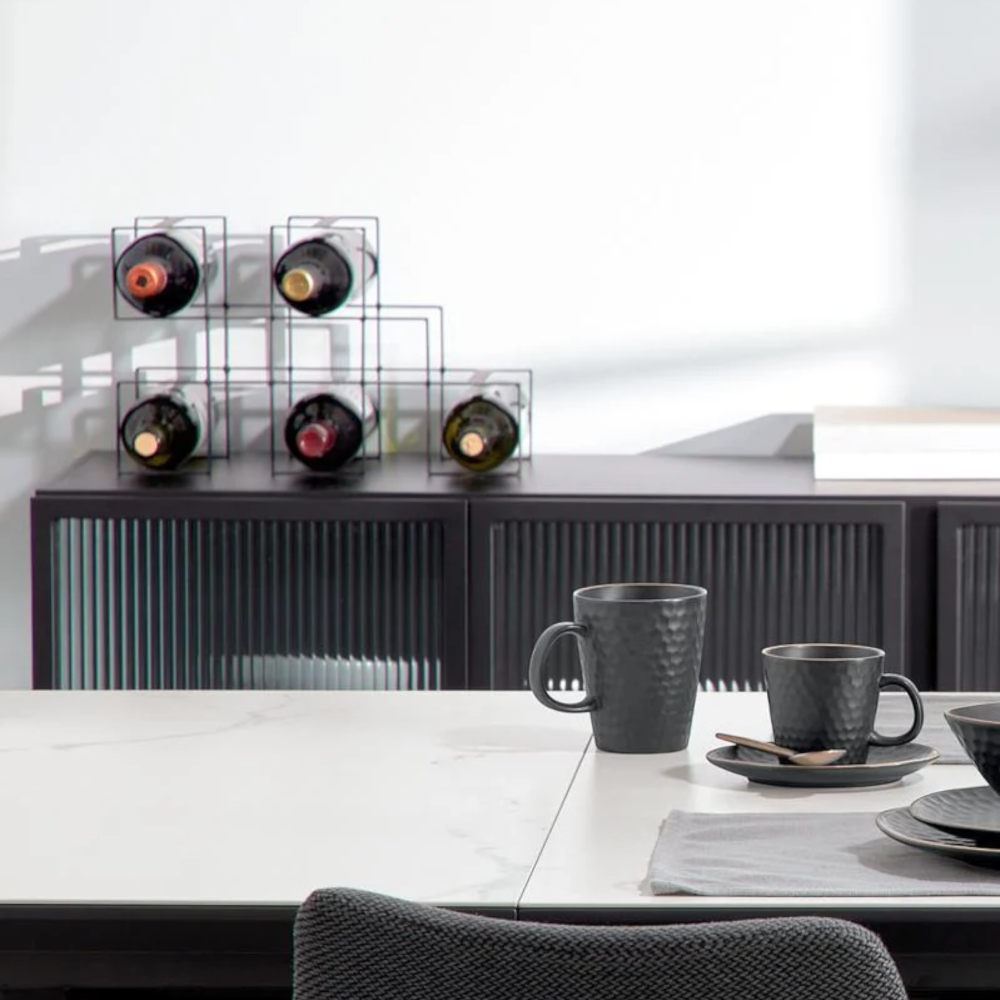 حافظ على تنظيم زجاجاتك مع حامل الزجاجات الحديدي إدور. بقياس 23x37x18 سم، يوفر هذا الحامل الحديدي الأسود حلاً أنيقًا ومتينا لتخزين زجاجاتك.