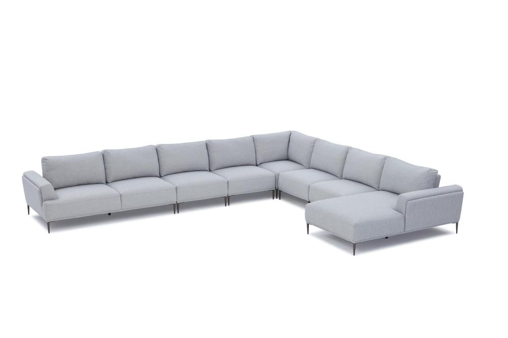 The Hero sofa features a wide and comfortable seating area with a modern sofa design that complements your innovative home decor. This corner sofa is not only aesthetically pleasing, but it also offers a comfortable seat and back support thanks to its thick, high-quality padding. There are armrests on each end of the corner sofa, further enhancing seating comfort. It is the perfect piece for your living room or private lounge. With its sturdy legs, you can place the L shape sofa on carpets or various types of flooring. You can also visit our accessories section to coordinate some items with the Hero sofa.