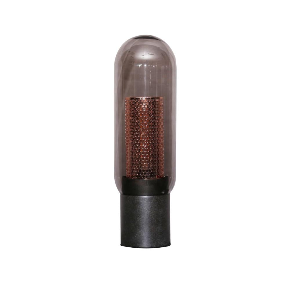 If you're looking for a unique table lamp to fill that empty space on the table, look no further! This stunning lamp receives a lot of compliments, and it's easy to see why. It features a handcrafted smoke glass shade with a sturdy copper tube wrapped in coarse mesh. Suitable for a coffee table, relaxation chairs, and even sofa sets, the elegant bell-shaped glass combined with the durable copper tube gives the lamp a stylish and modern appearance. Additionally, it evenly distributes warm light throughout the room. Notable benefits of this tall lamp include its ability to create a cozy atmosphere, its stable design, and its slim profile, allowing it to fit into almost any space.