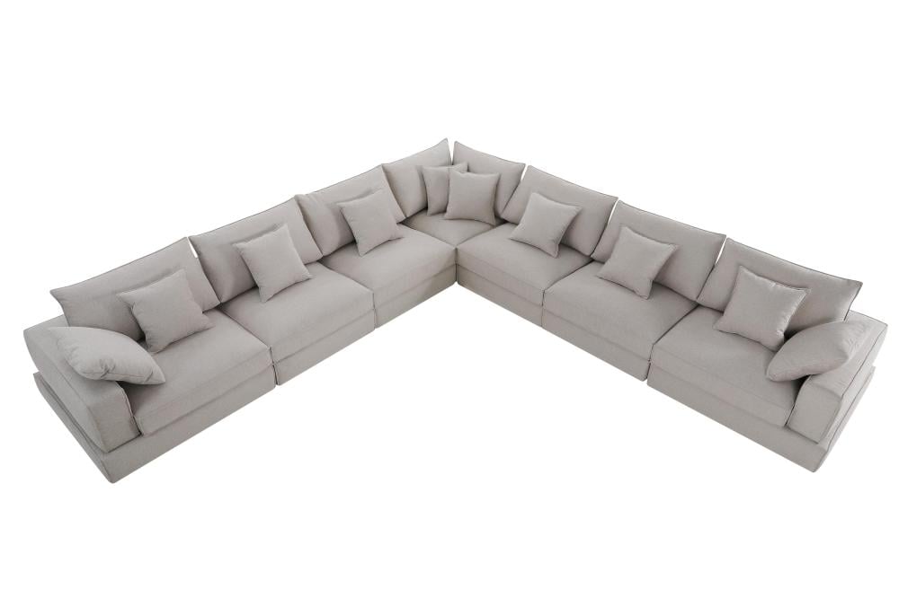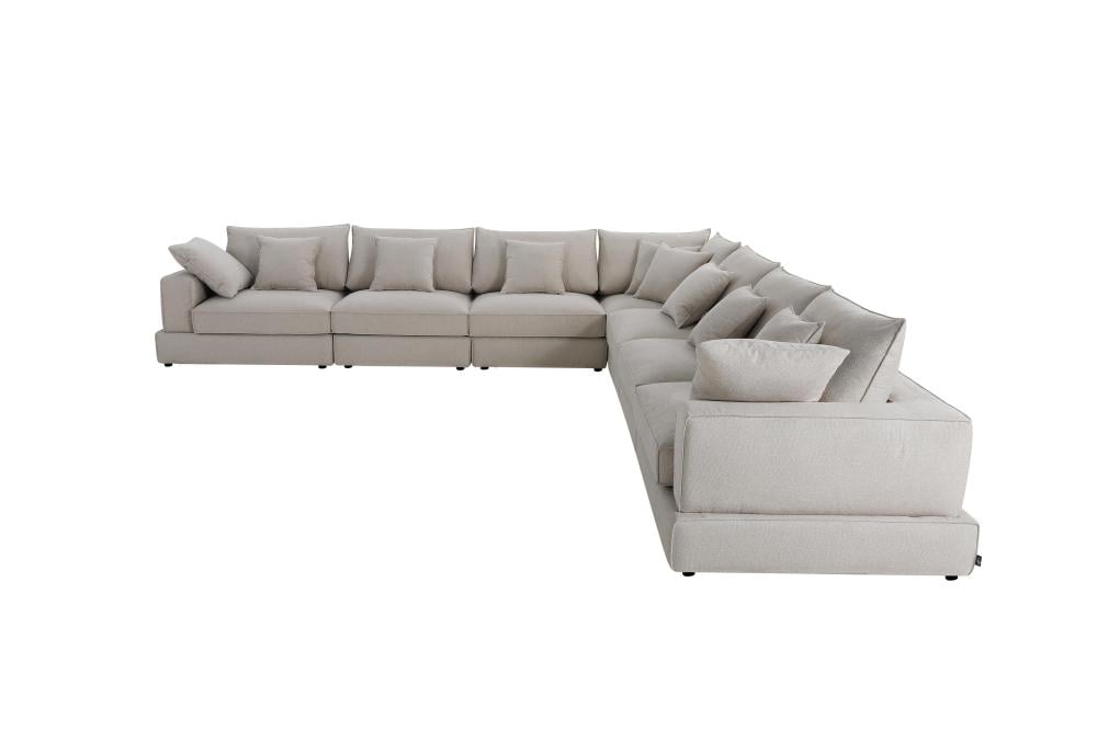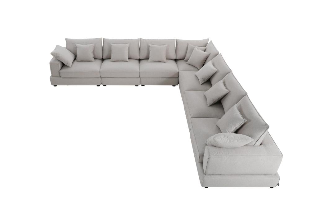 This modern sofa is distinguished by its large size and spacious seating area, featuring seven comfortable seats that make it ideal for a living room. The extra-thick cushions provide maximum relaxation while watching television or enjoying special family moments. The L shape sofa includes seven large cushions for back support while sitting, as well as smaller cushions for leaning and enhancing the sofa's aesthetic. The armrests on the sides are designed to support your arms while sitting. The closed, sturdy base ensures that it does not slide on carpet and smooth floors, a corner sofa that coordinates perfectly if you prefer to place the corner sofa on a carpet.