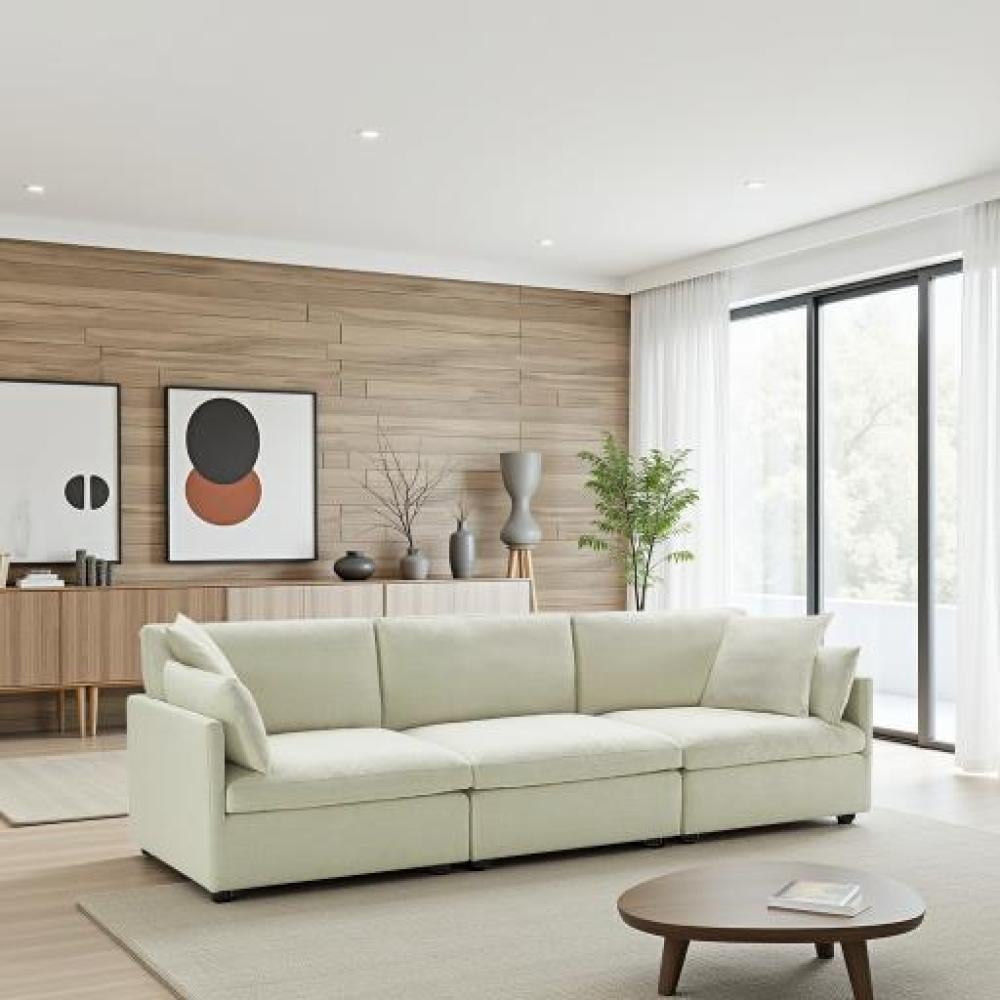 3 seater sofa is ideal as an addition as a bedroom sofa. It features an attractive modern design while maintaining high-quality materials used in its manufacturing. The durable sofa fabric comes in a beige color that easily blends with the surrounding home decor, whether in the bedroom or as an addition to the living room furniture. The modern sofa size makes it perfect for small spaces, with dimensions of 192×96×85 cm. This small sofa boasts a sturdy, closed base that is solidly connected. It provides exceptional comfort thanks to the rich, plush cushioning in both the backrests and the seats.