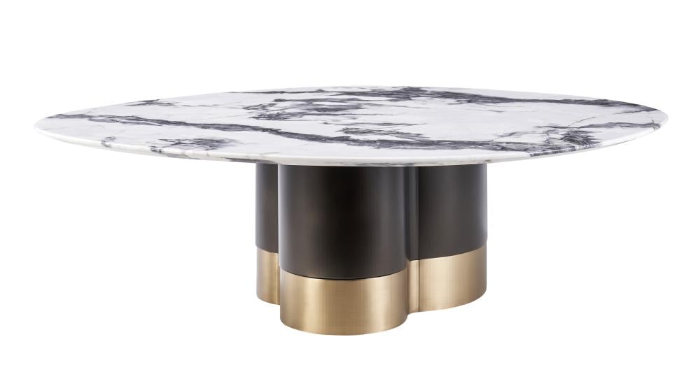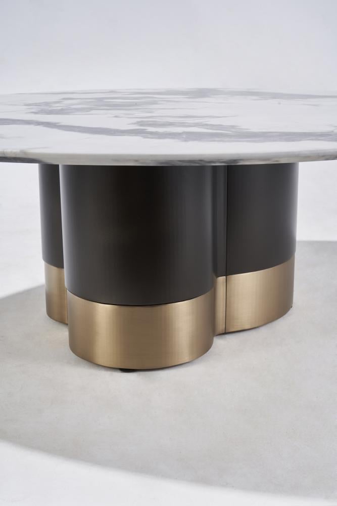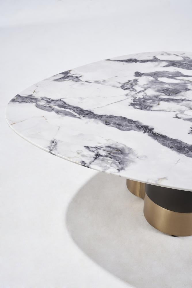 The round dining table from Daisy combines elegance and durability with its stunning black and gold design. It features a surface made of luxurious white stone that beautifully contrasts with the golden accents, making it both a stylish and practical table. Its strong metal base provides the necessary stability and support, making it ideal for daily use. Measuring 120×100×36 cm, it seamlessly fits into any dining area, enhancing the aesthetic appeal of your home. Perfect for pairing with wooden or leather chairs and adding overhead lighting for a high-attractiveness look, the modern dining table from Daisy is an essential addition to your dining space.