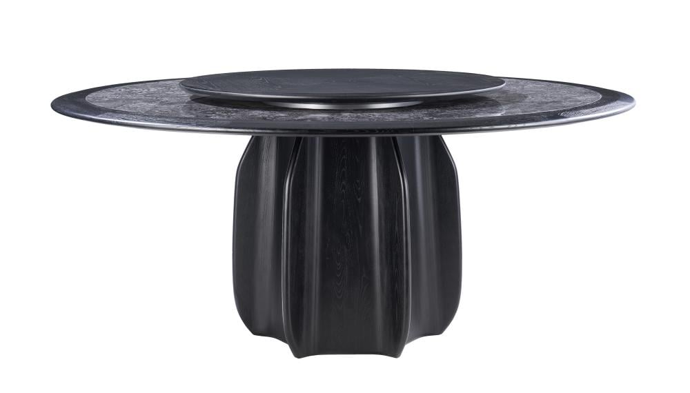 We introduce to you the round dining table, a stunning combination of elegance and durability. This luxurious dining table is made from black sintered stone, showcasing a modern and stylish design that complements various chair styles, whether metallic or wooden. This premium dining table features a solid wood base for added stability and support, ensuring it can withstand daily use. With a diameter of 180 cm and a height of 75 cm, this table comfortably accommodates family meals and gatherings. Enhance your dining area with this elegant piece by adding decorative lighting, as it beautifully combines functionality with contemporary aesthetics.