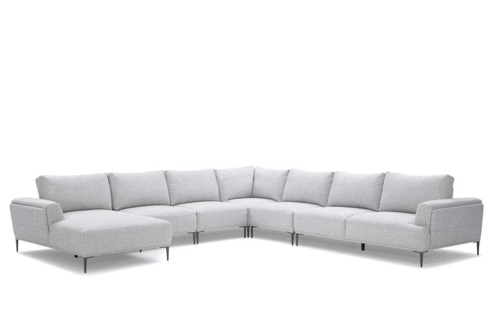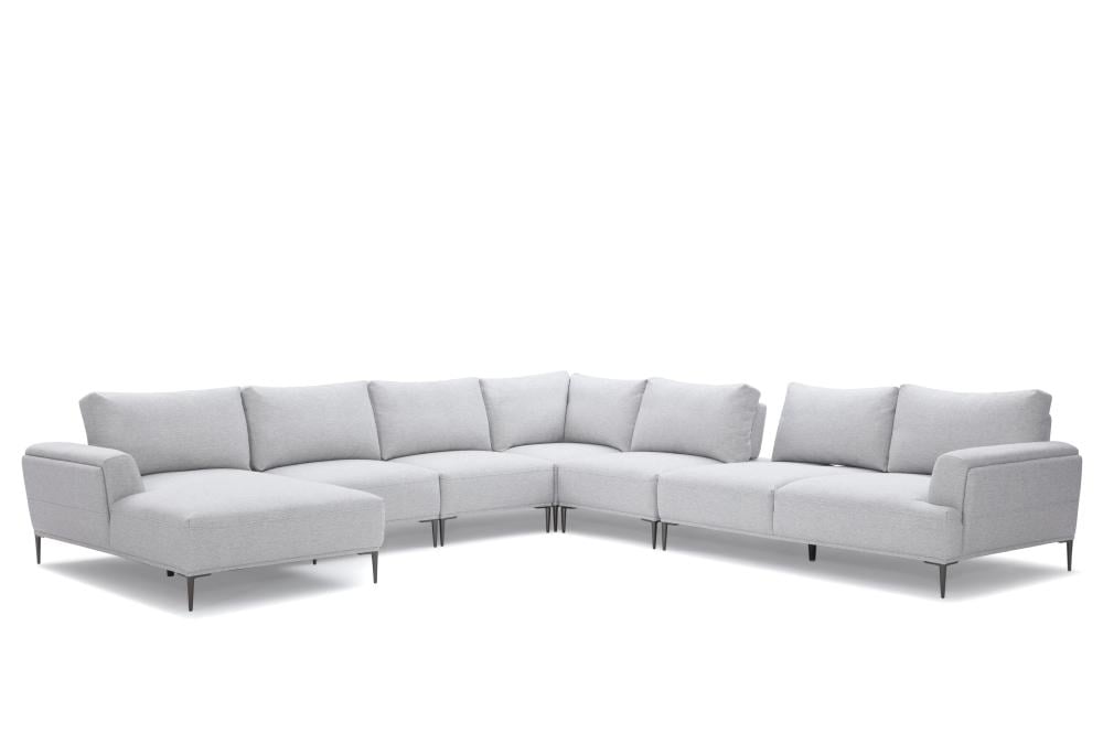 The HERO Modular Sofa offers an expansive and comfortable seating solution with its stylish light grey fabric. Perfect for large spaces, this L-shaped modular design is both versatile and modern, providing exceptional relaxation and an elegant aesthetic to any living area.