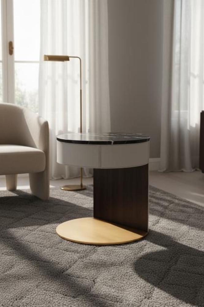 BLACK STONE WITH MDF SADDLE LEATHER METAL LEG