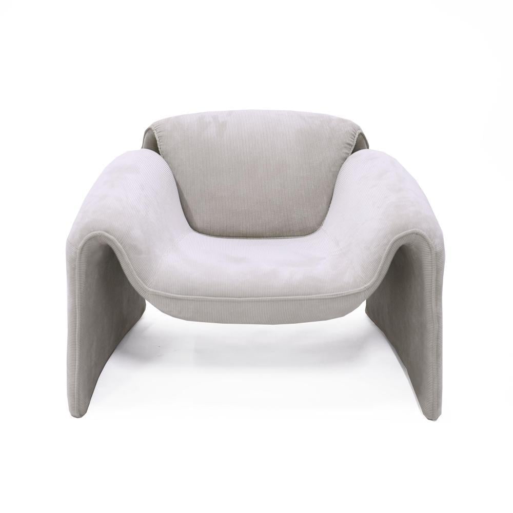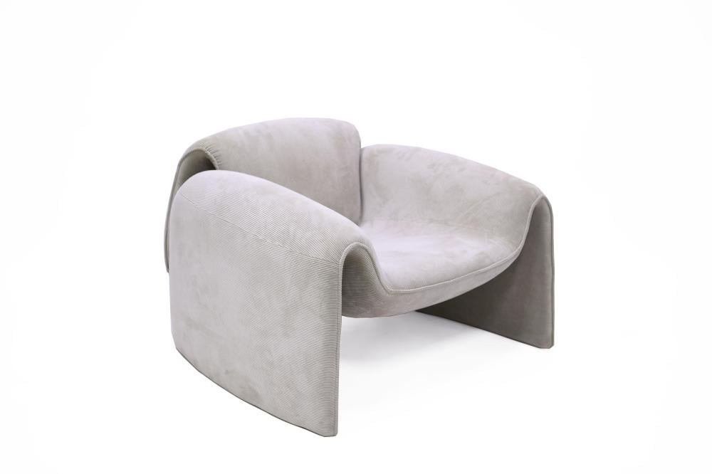 This chair features multiple curves with a modern design that eliminates any angles, making it an ideal home decor. The soft fabric and perfect curves accommodate the body's contours while sitting. It is comfortable and stylish, perfectly coordinating with a sofa set or coffee table.
