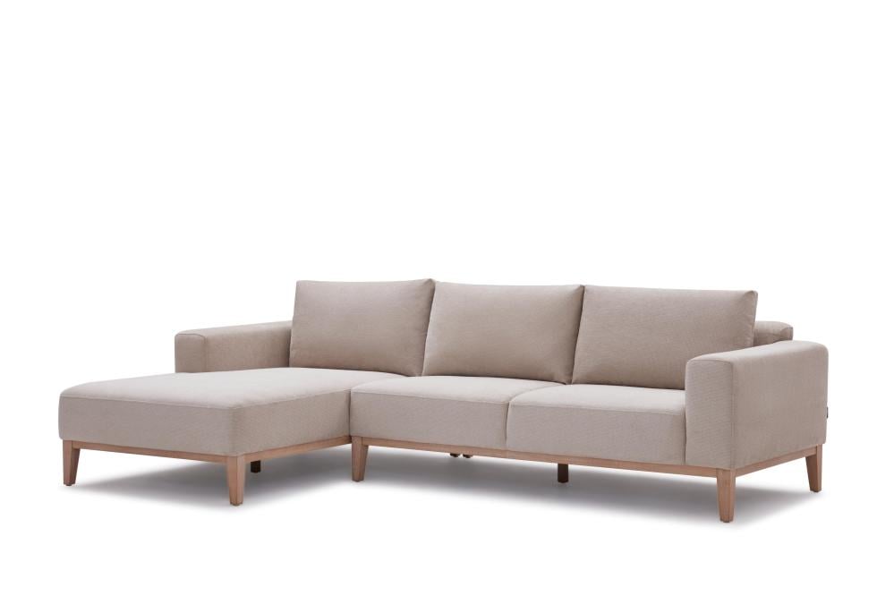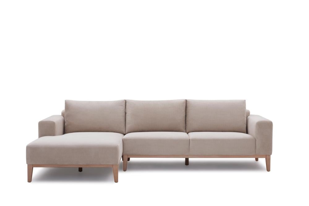 The Moana L-shaped corner sofa features an attractive modern sofa, making it an ideal corner sofa for a living room with limited space. It boasts an appealing light grey color and wooden bases for a harmonious color scheme. You can integrate it as additional furniture for a slightly smaller seating area as a bedroom sofa. The fabric is highly durable with a small square pattern, and it is also soft to the touch, providing exceptional comfort for sitting or lounging. With optimal dimensions of 285×169×85 cm, this sofa set is easy to coordinate with various tables, home decor, and even single-seat chairs. You can visit these sections on our website and create your own furniture design.