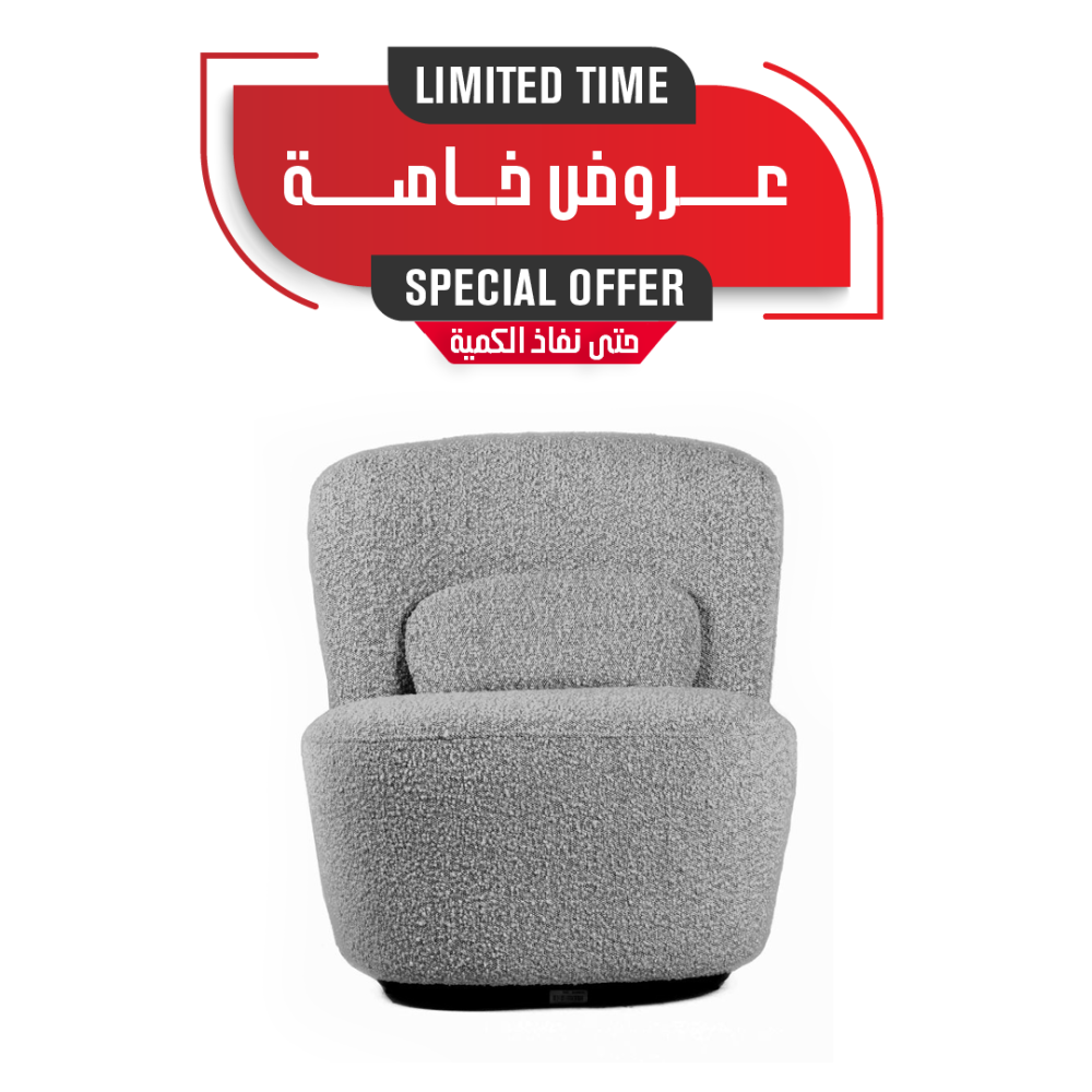 The Rainbow chair features a swivel base in an attractive grey color. It is a small relaxation chair that suits limited spaces in the home. This comfortable chair is ideal for pairing with corner sofas or a coffee table due to its appropriately sized design and perfect color. A small chair that fits into any small corner and several carpet colors, while the durable metal base ensures the chair's strength and stability over the long term.