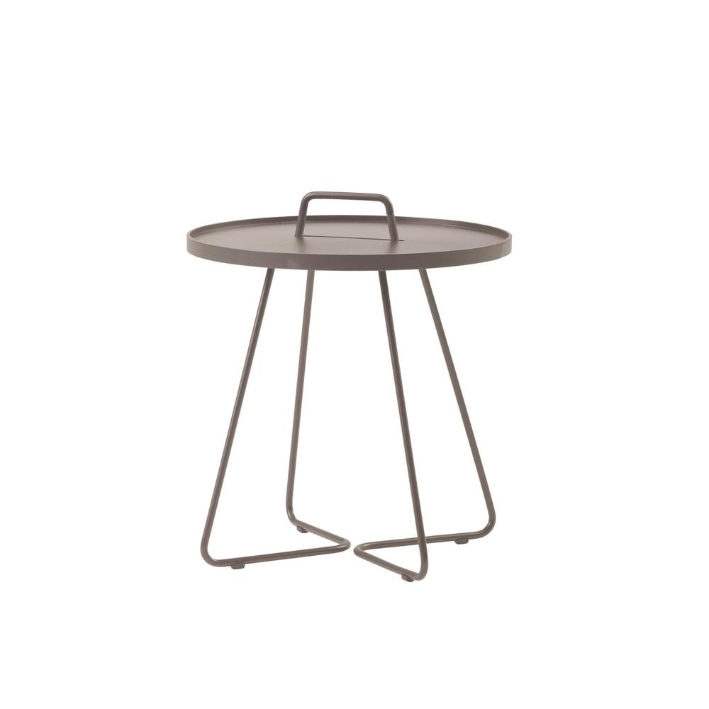 This table is made of taupe-painted aluminum, making it suitable as a round coffee table for both indoor and outdoor seating. You can use it as a coffee table and easily move it from place to place thanks to the convenient carrying handle. It is lightweight and doesn’t require much effort to carry, making it the ideal choice for your outdoor furniture collection. With its attractive design, it serves as a perfect addition next to wooden chairs with garden furniture.